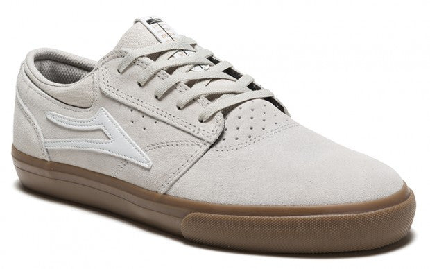 Lakai Shoes Griffin - Cream Suede : This style has fast become a highly requested team favorite. The upper features our popular clean toe construction with a seamless vamp and perf detail to increase breathability. Hidden midsole crating adds a layer of shock absorption for comfort, while unique tongue branding lends the finishing detail.