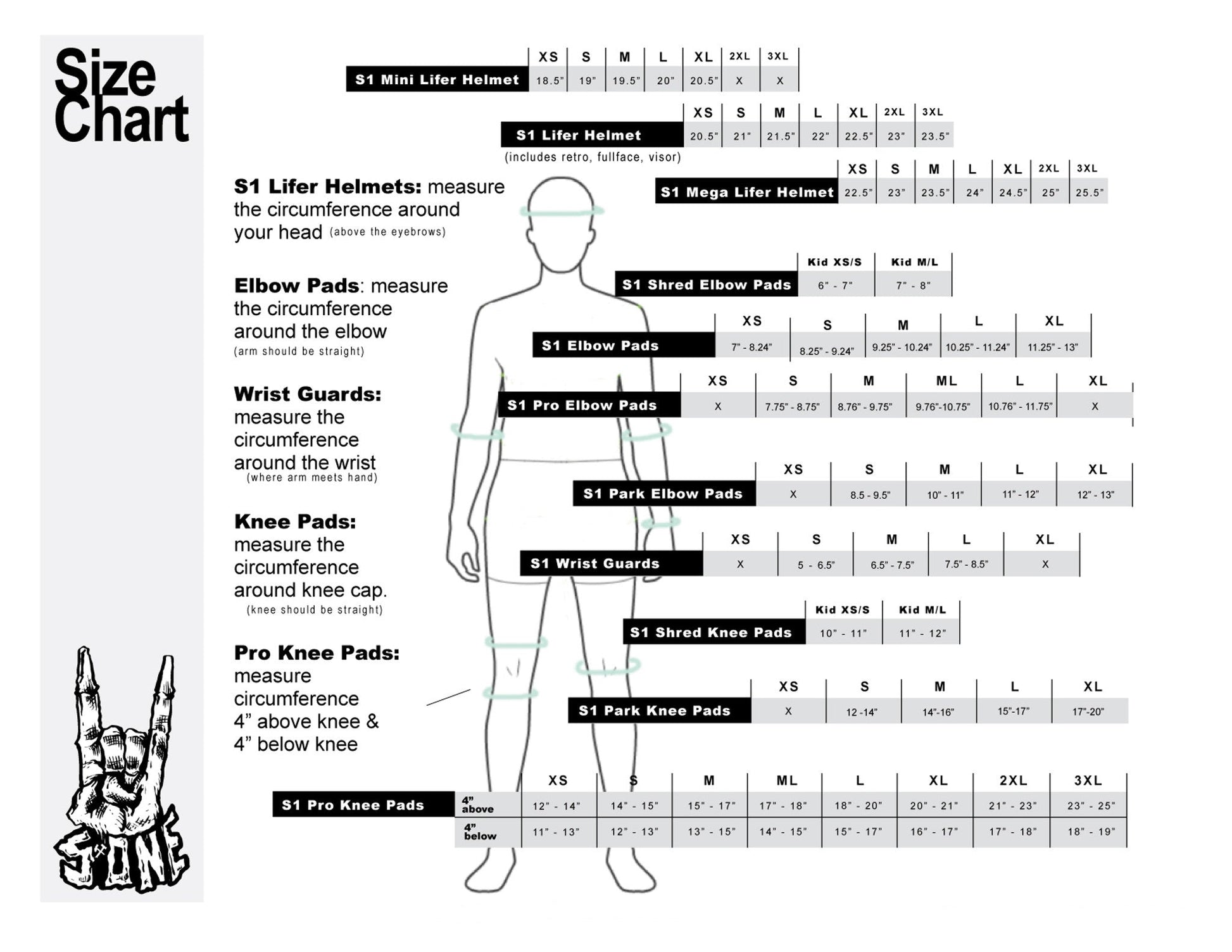To figure out what size you need measure the circumference of your knee at the knee joint and compare your measurement to the sizing guide below.