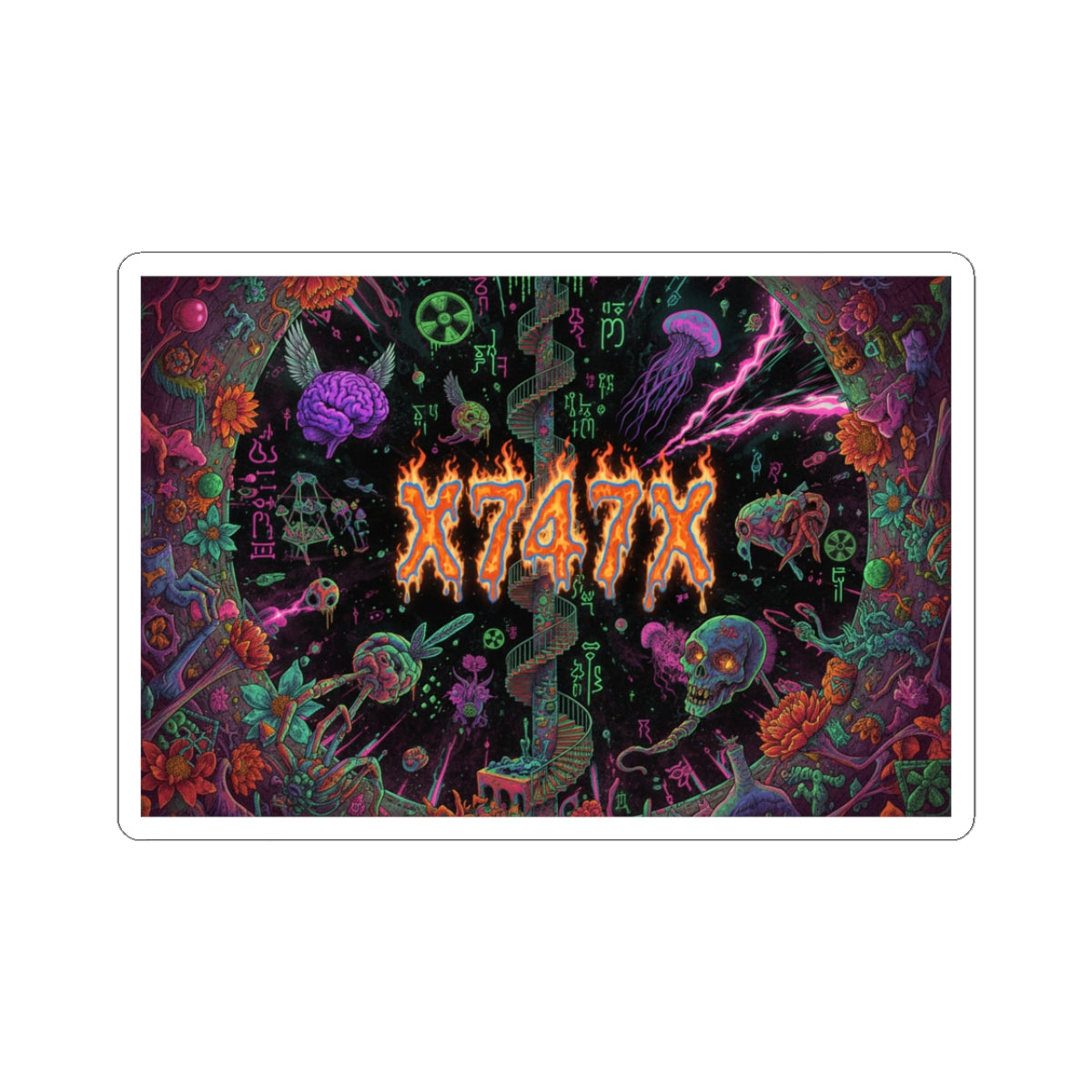 X747X Neon Horror Sticker